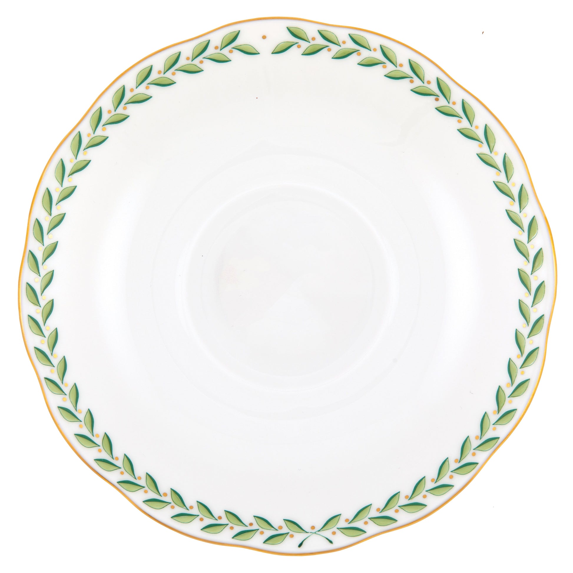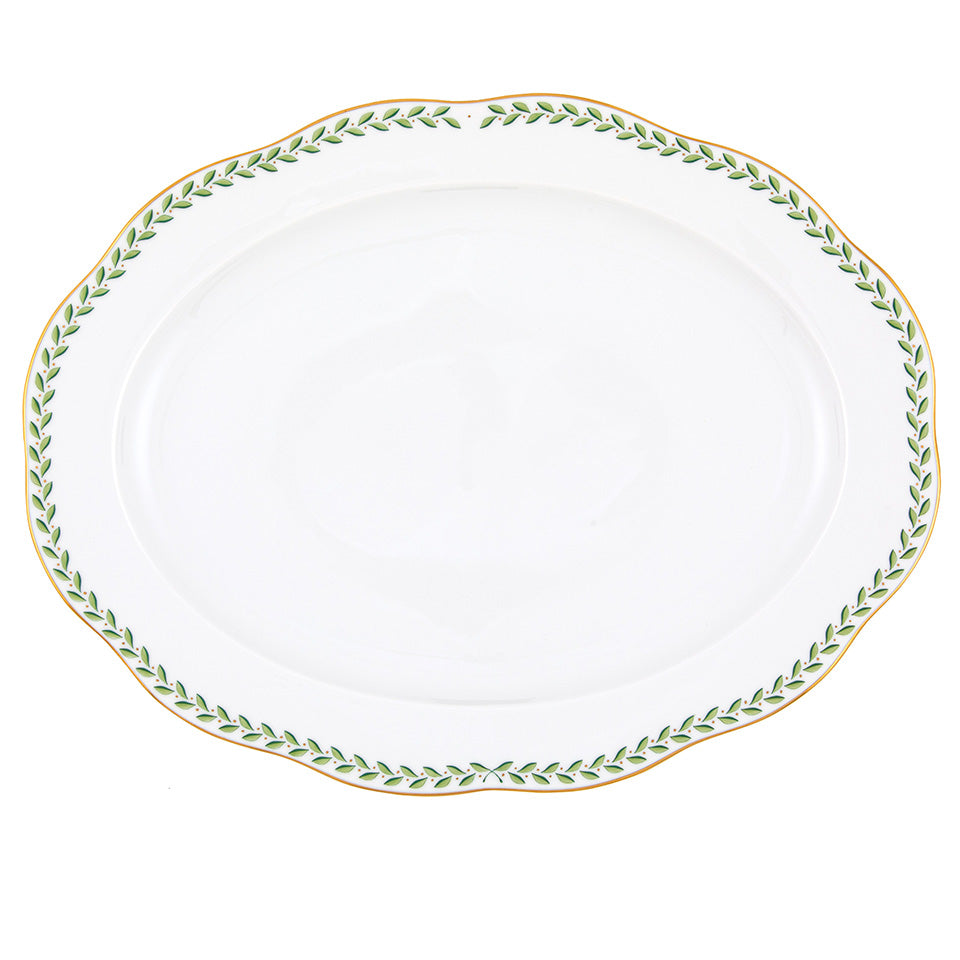 Trim even leaves hint at the beauty of a formal topiary garden but the duality of the green color adds a playful dynamic that makes this pattern the perfect companion from holiday tablescapes to summer picnics on the lawn.