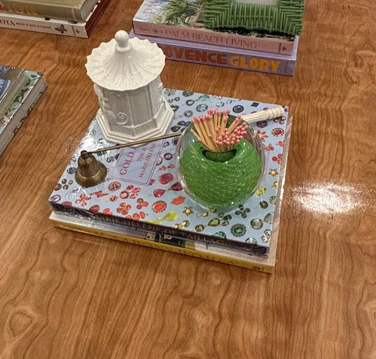 Bespoke small batch hand blown match striker produced in Texas. Includes corresponding matches. Match striker attached on the bottom.