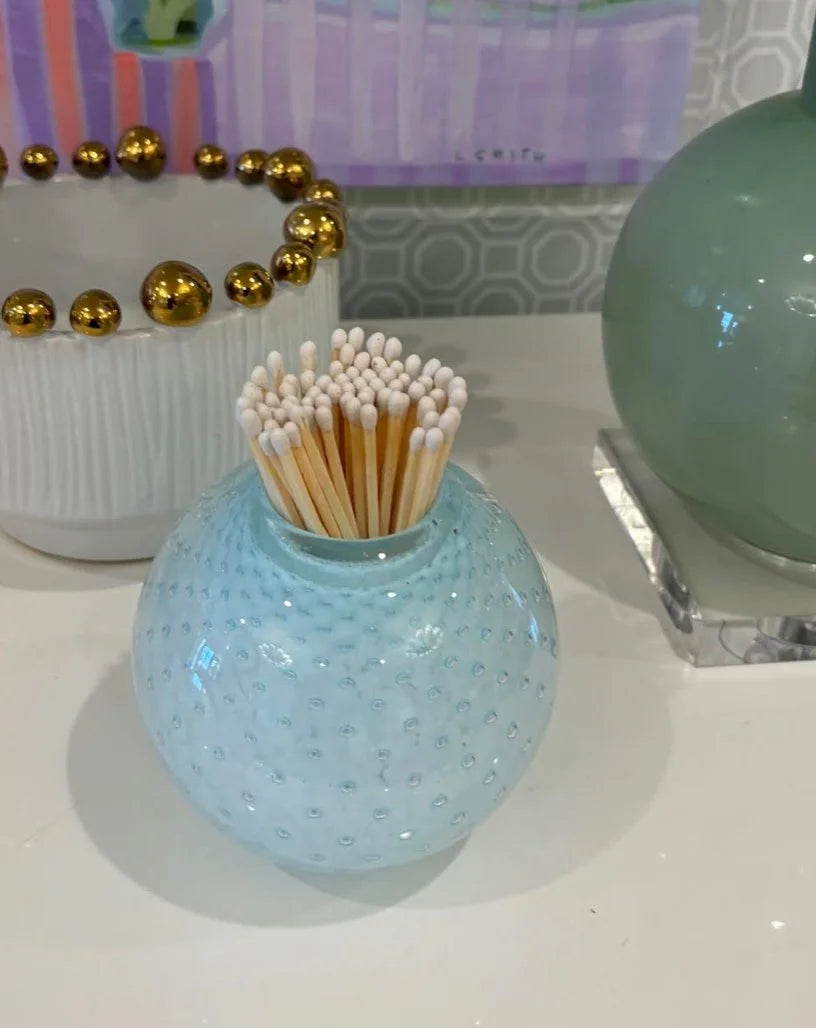 Bespoke small batch hand blown match striker produced in Texas. Includes corresponding matches. Match striker attached on the bottom.