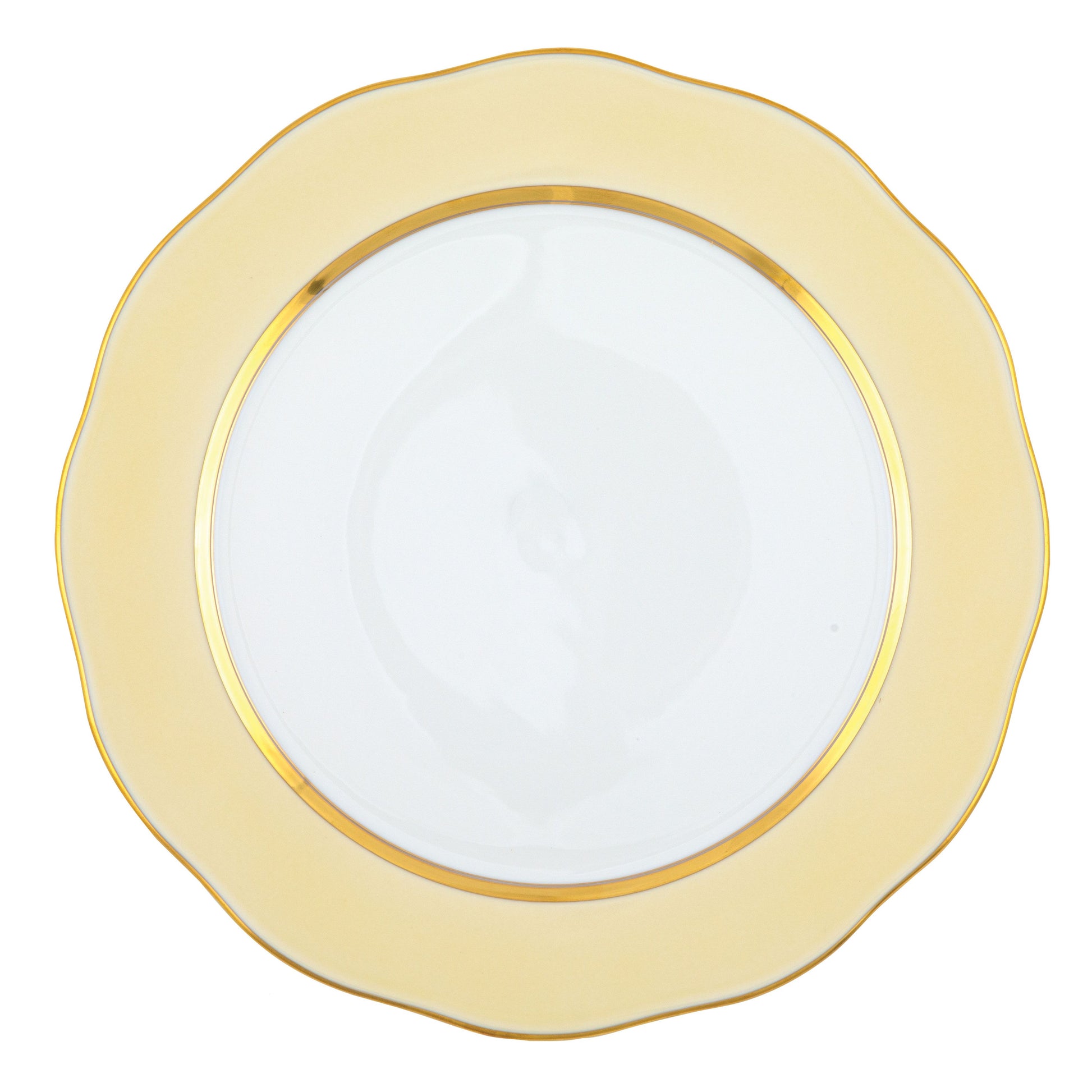 The Herend Silk Ribbon collection features a solid color border with gold detailing around the inner and outer rim and a scalloped shape. This versatile pattern can easily be paired with other collections or used on its own. Hand wash recommended and not microwave safe.