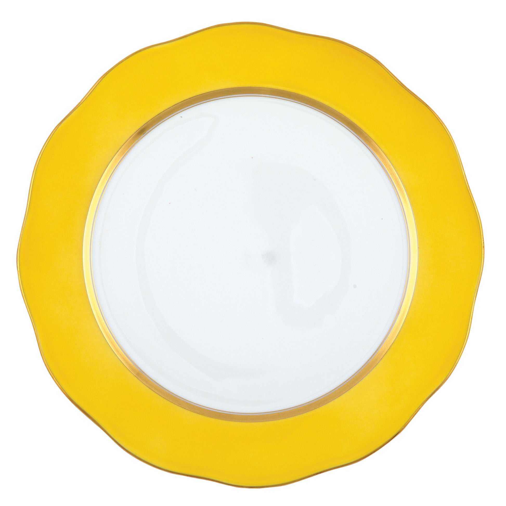 The Herend Silk Ribbon collection features a solid color border with gold detailing around the inner and outer rim and a scalloped shape. This versatile pattern can easily be paired with other collections or used on its own. Hand wash recommended and not microwave safe.