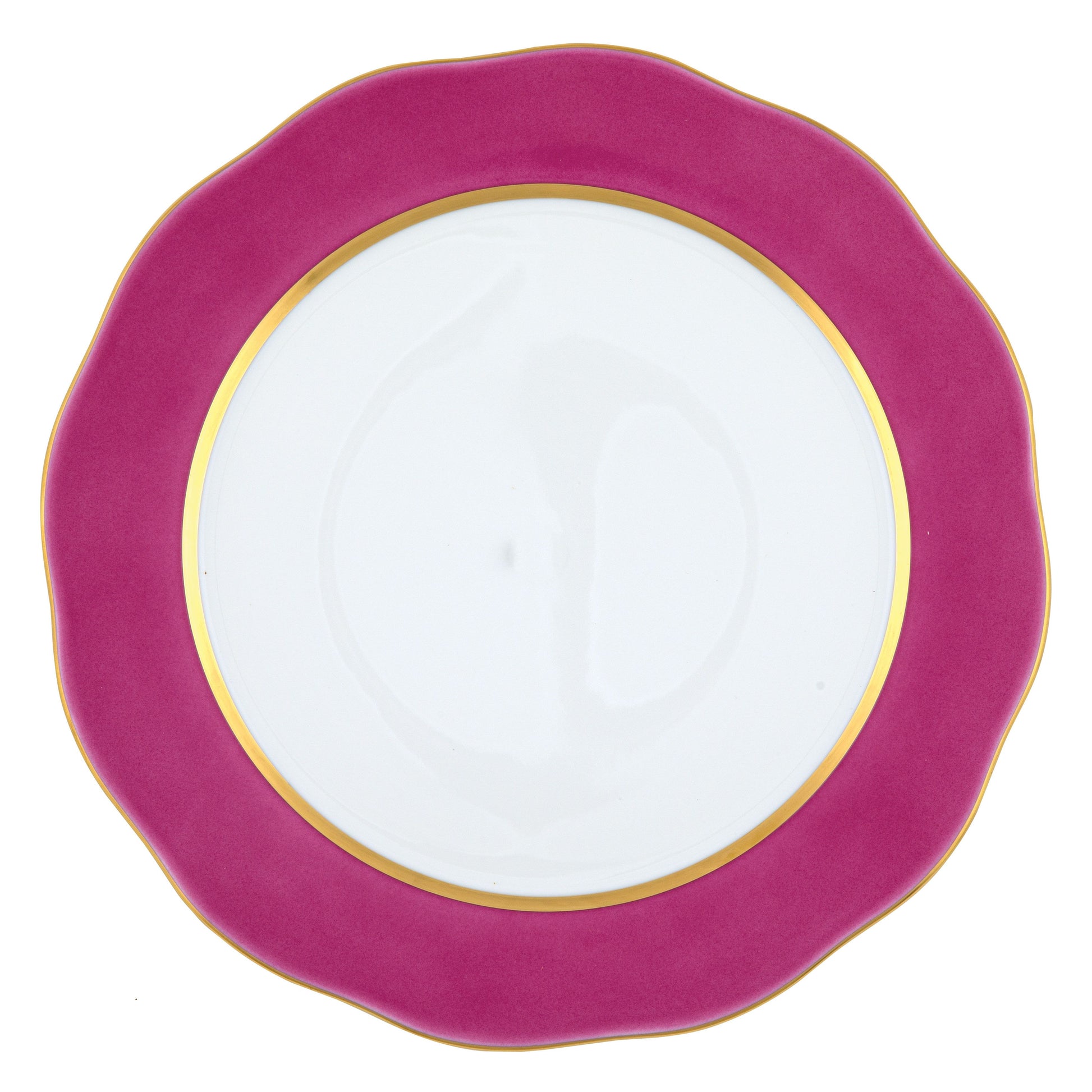 The Herend Silk Ribbon collection features a solid color border with gold detailing around the inner and outer rim and a scalloped shape. This versatile pattern can easily be paired with other collections or used on its own. Hand wash recommended and not microwave safe.