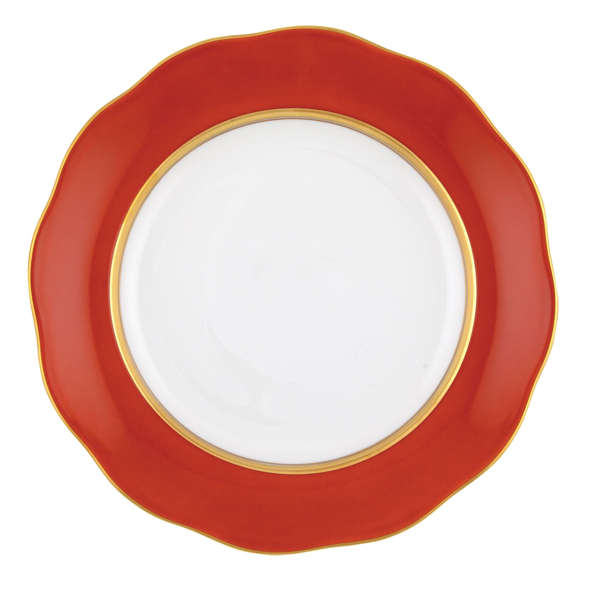 The Herend Silk Ribbon collection features a solid color border with gold detailing around the inner and outer rim and a scalloped shape. This versatile pattern can easily be paired with other collections or used on its own. Hand wash recommended and not microwave safe.