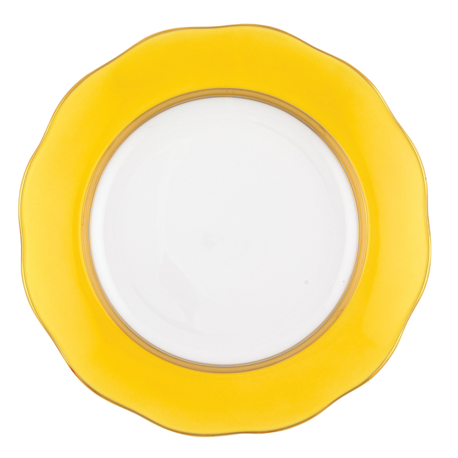 The Herend Silk Ribbon collection features a solid color border with gold detailing around the inner and outer rim and a scalloped shape. This versatile pattern can easily be paired with other collections or used on its own. Hand wash recommended and not microwave safe.