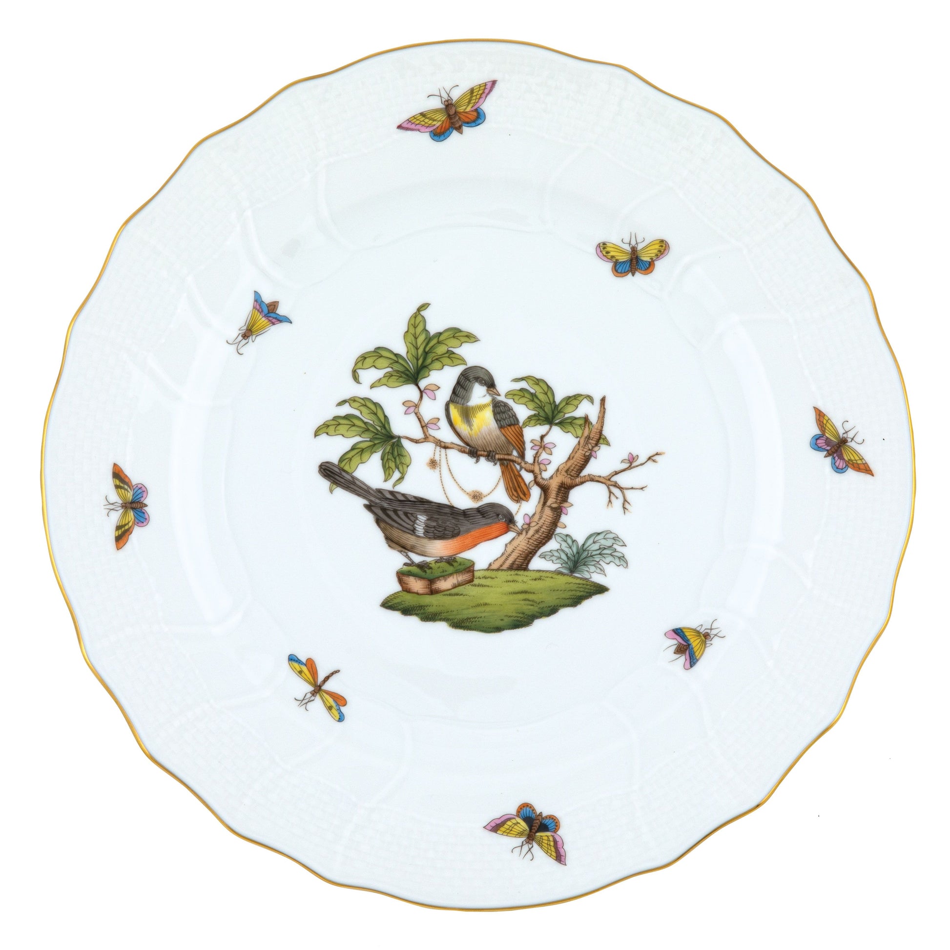 Many connoisseurs consider this pattern, first created in 1860 for the Rothschild family of Europe, to be the epitome of hand painting on porcelain. Twelve different motifs portray a 19th century tale about Baroness Rothschild, who lost her pearl necklace in the garden of her Vienna residence. Several days later it was found by her gardener, who saw birds playing with it in a tree.