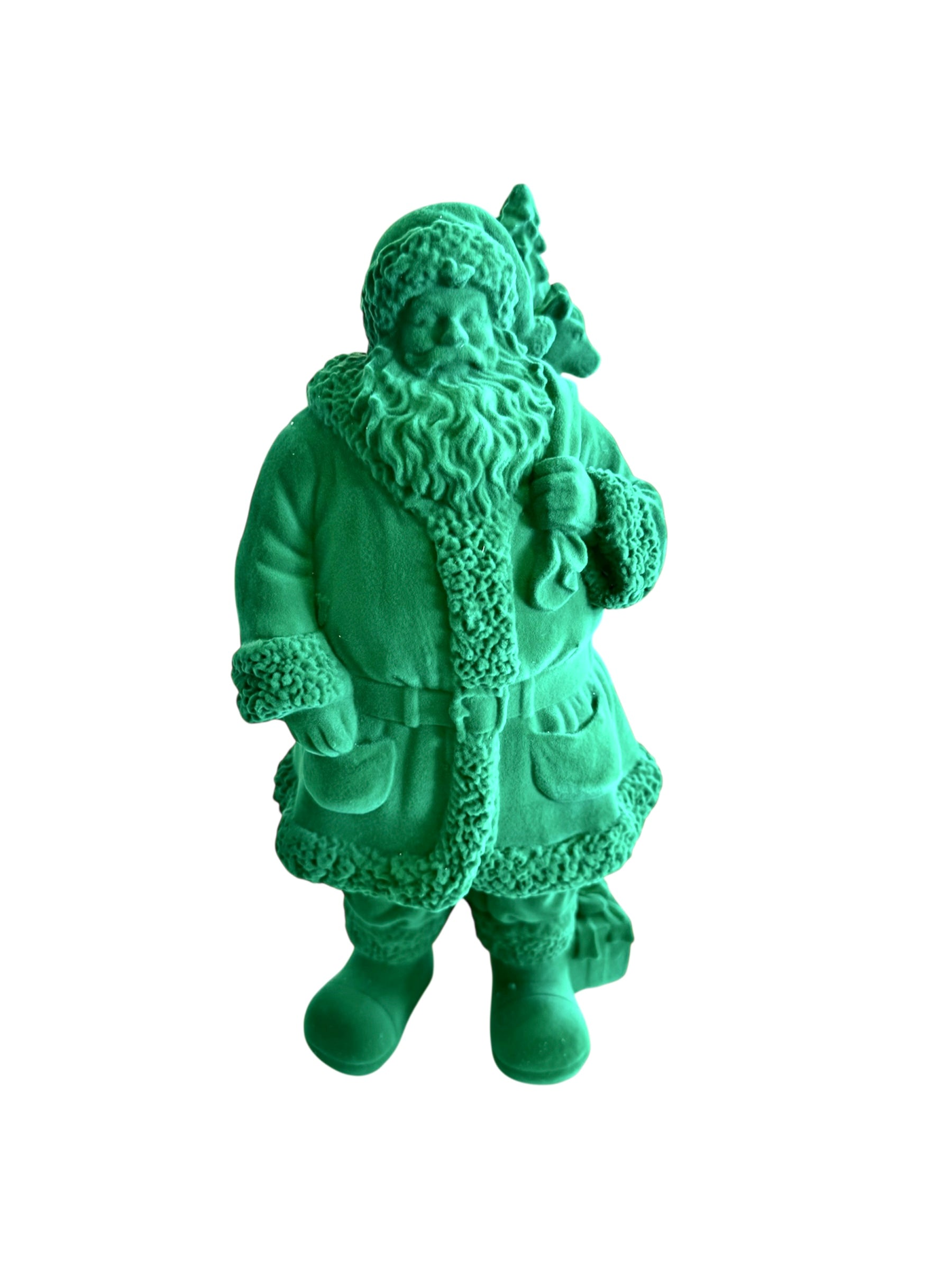 Bring festive charm to your holiday décor with this 12-inch Small Flocked Santa. Crafted from durable resin and finished with a soft flocked texture, it adds a cozy, wintry touch to any space